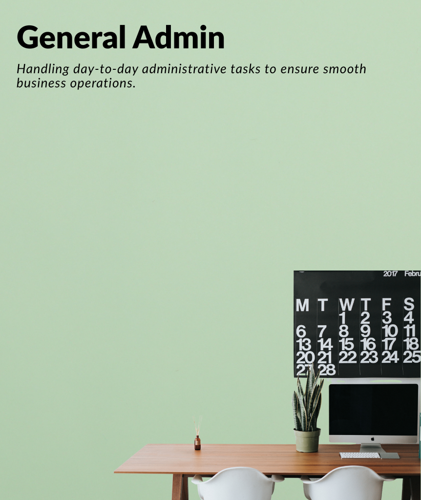 Our General Assistants offer a wide range of administrative support, ensuring that all your day-to-day operational needs are met efficiently. Their versatility allows them to adapt seamlessly to various office functions and tasks.